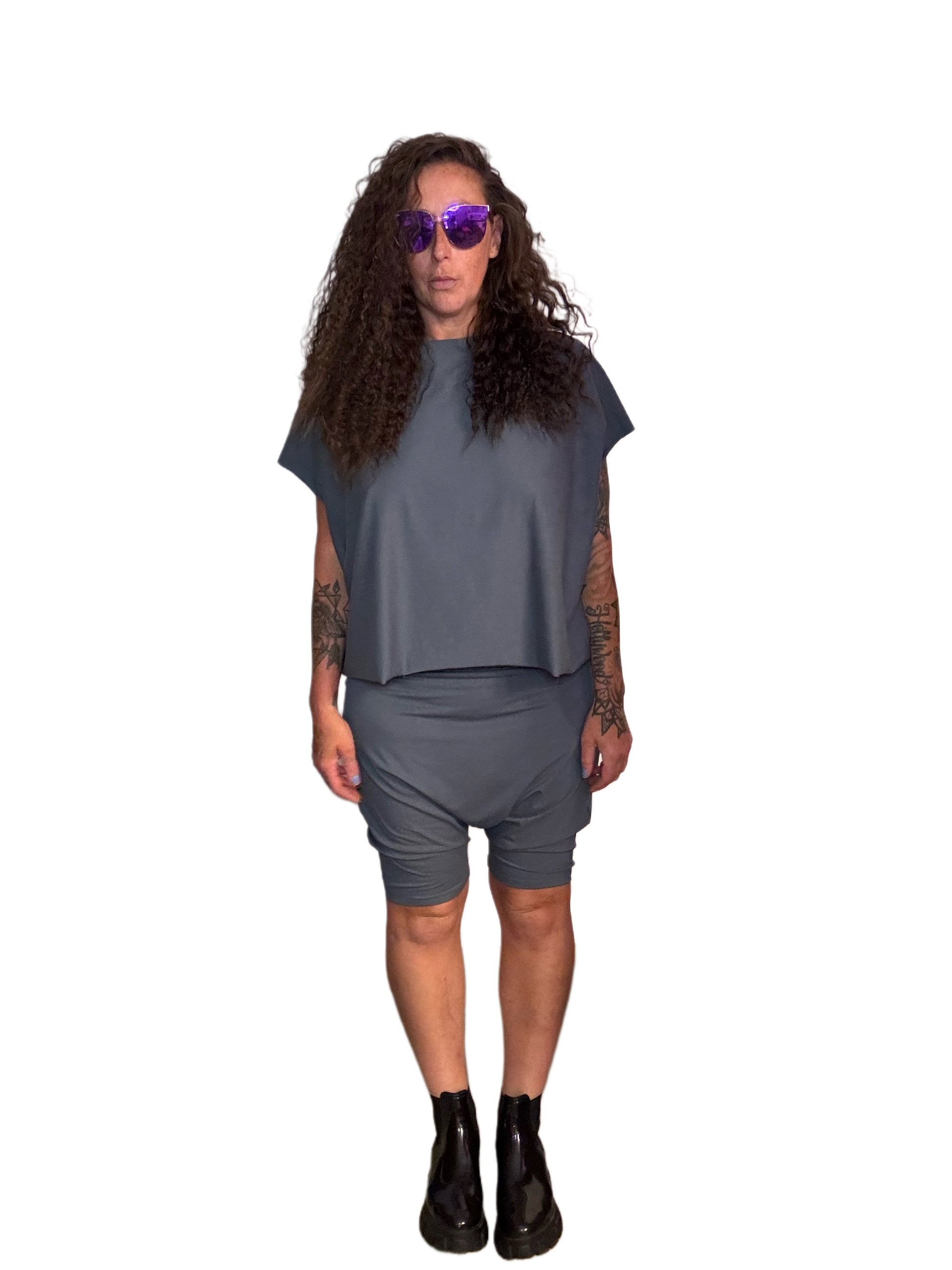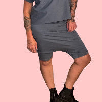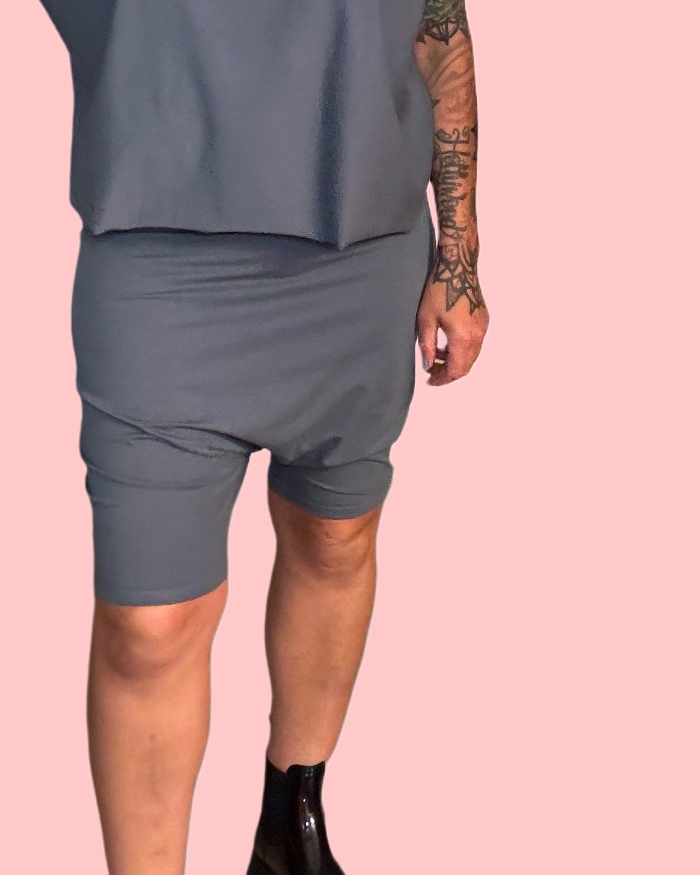 Simplify your look with these semi drop crotch Bamboo blue green harem shorts. These lightweight stretch knit shorts are so comfy and cool . The waistline is left in its raw form which means no tight elastic restricting you or digging in . Minimalistic designs allow your personality to shine !