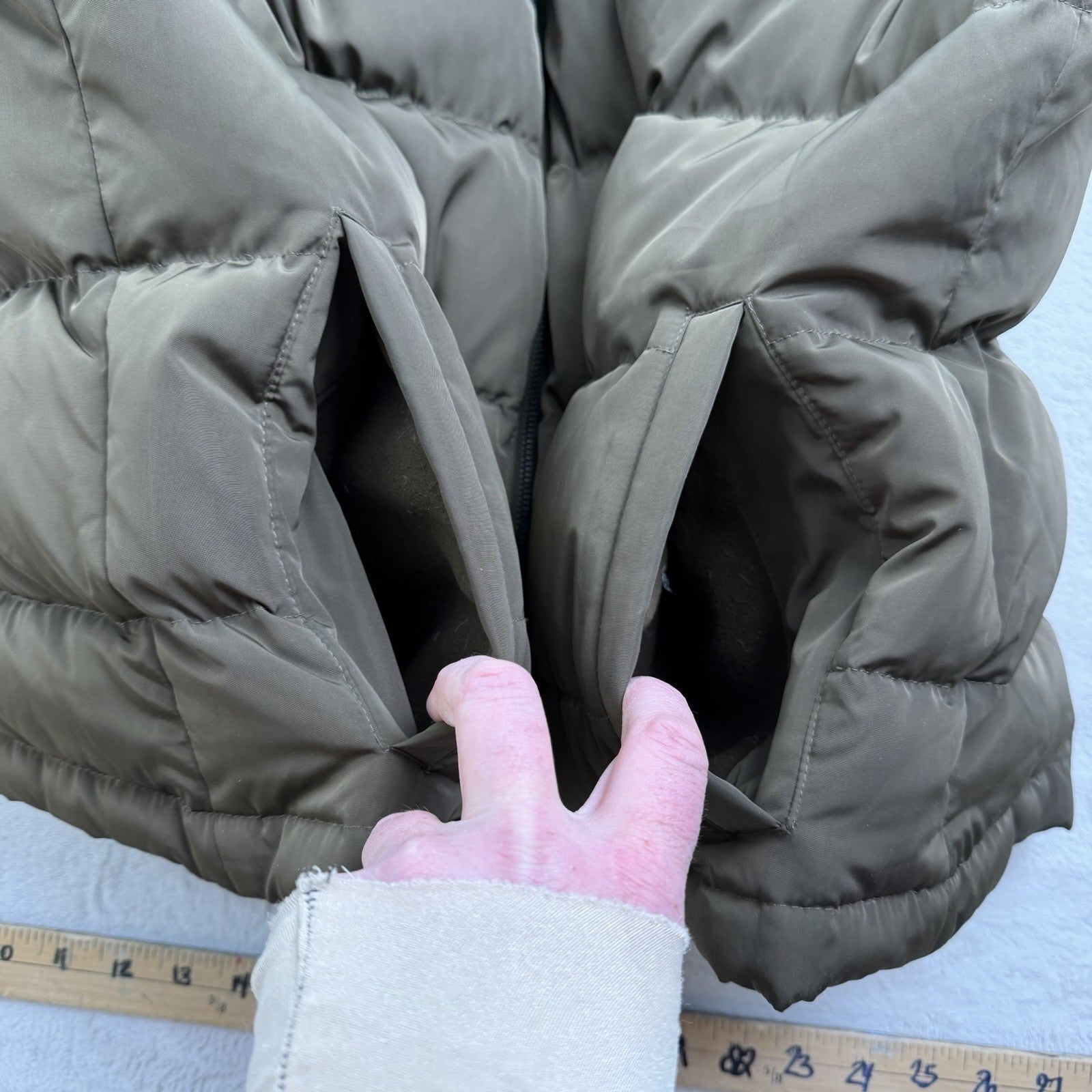 Talbots Womens Olive Green Puffer Vest Zip Front Duck Down Feather Gorpcore XL